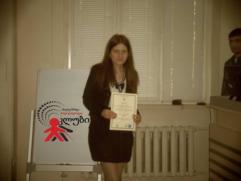 ლია გელაშვილი – ილიას სახელმწიფო უნივერსიტეტის ახალგაზრდა პოლიტოლოგთა კლუბის დამფუძნებელი.