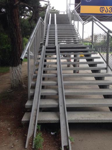 თბილისის ძალიან ბევრ მთავარ ქუჩაზე ვხვდებით მიწისზედა გადასასვლელ ხიდებს, რომელთა სიმაღლეც დაახლოებით 6 მეტრია და მასზე ასვლა მხოლოდ საკმაოდ დიდი და დამღლელი კიბით არის შესაძლებელი. ამ ხიდებს გააჩნიათ პანდუსები , თუმცა ისინი იმდენად ციცაბოა, მასზე ეტლით ასვლა, ფაქტობრივად, შეუძლებელია.