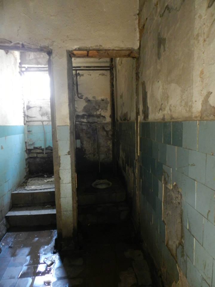 პირველად ეზოში შესვლისას ყურაღებას თავსახურის გარეშე დარჩენილი საკანალიზაციო ჭა იპყრობს. ადგილს ეტყობოდა, რომ ლითონის მილები დიდი ხნის წინ ამოუღიათ, შესაძლოა , ჯართში ჩააბარბის მიზნითაც. მეორე, რაც თვალში ადვილად მოხვდებოდა დაკვირვეულ მზრას, მეორე სართულიდან პირველისკენ მომართული წლის ჭავლი იყო. შენობაში არსებულ წყლის მილებს ონკანი არ აქვთ, წყალი კი პირდაპირ სარდაფში ჩაედინება და გროვდება. შენობის სიღრმეში ერთადერთი ლანდი მოჩანდა, ოპერატიულობა აუცილებელი იყო, რადგან იმ მომენტში ერთადერთი ლანდი და ამავდროულად წყარო (რესპონდენტი) არ გამქრალიყო.