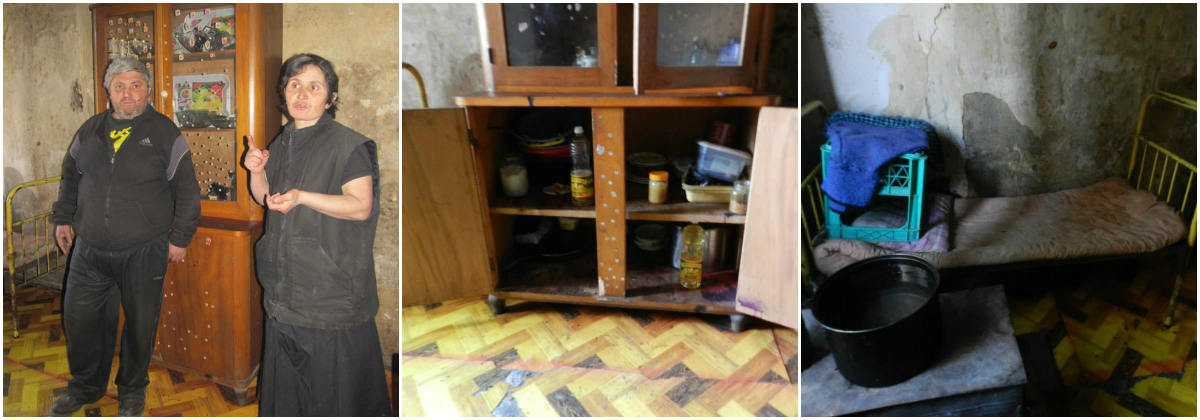 დათო და გიული მახარაშვილები 12 წელია ყოფილი სანატორიუმის შენობაში ცხოვრობენ.ზუსტად ამდენივე ხნია არ აქვთ ელექტროენერგია.მათი 4-სულიანი ოჯახი სოციალურად დაუცველთათვის განკუთვნილ 204 ლარს თვიდან თვემდე ვერ ანაწილებენ, რის გამოც ხშირად ულუკმაპუროდ რჩებიან. მათი ქონება საიმედო ზამბარებიანი საწოლისა (ისიც ლეიბის, ბალიშისა და საბნის გარეშე) და ერთადერთი მუდმივად ცარიელი კარადისაგან შდგება.იმისათვის, რომ მათ სიტყვები კიდევ უფრო მყარი ყოფილიყო და ეჭვი არ შემპარვოდა კარადა გამოაღეს. თაროზე მხოლოდ მარილი, ზეთი და ფერდაკარგული ცარიელი ჭურჭელი იწყო. დილიდან არაფერი უჭამიათ, არც საღამოსთვის ექნებათ რამე, ხვალისთვის კი ეცდებიან რამე მოახერხონ. ,,მამა პური მშია!’’_ ამ სიტყვებს ხშირად ისმენს ოჯახის უფროსი, რომელმაც ახლახან მოიხადა რიგით მესამე სასჯელი, ჯართის ქურდობისთვის. თავისთავად, ნასამართლეობა სამსახურის შოვნისთვის ბარიერი აღმოჩნდა. ქმრის ციხეში ყოფნისას ქალბატონი გიული თანასოფლელებს ბარვაში ეხმარებოდა და ასე შოულობდა ლუკმა- -პურს. მიწის მცირე ნაგლეჯიც არ აქვთ, შესაბამისად ვერც მოოსავალი მოჰყავთ.